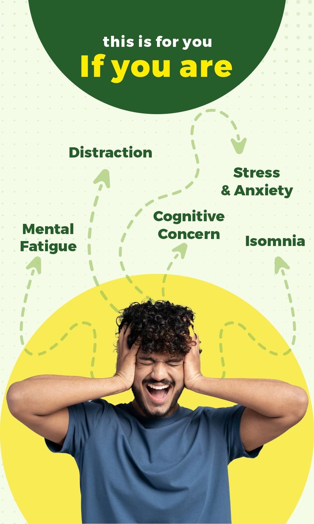Crafted with 9 clinically trusted herbs like Ashwagandha, Brahmi, Shankhpushpi, Jatamansi, Sarpagandha, Tagar, Mandukaparni, Jyotishmati and Bach, this formula helps reduce mental fatigue, ease anxiety and promote deep, natural sleep.