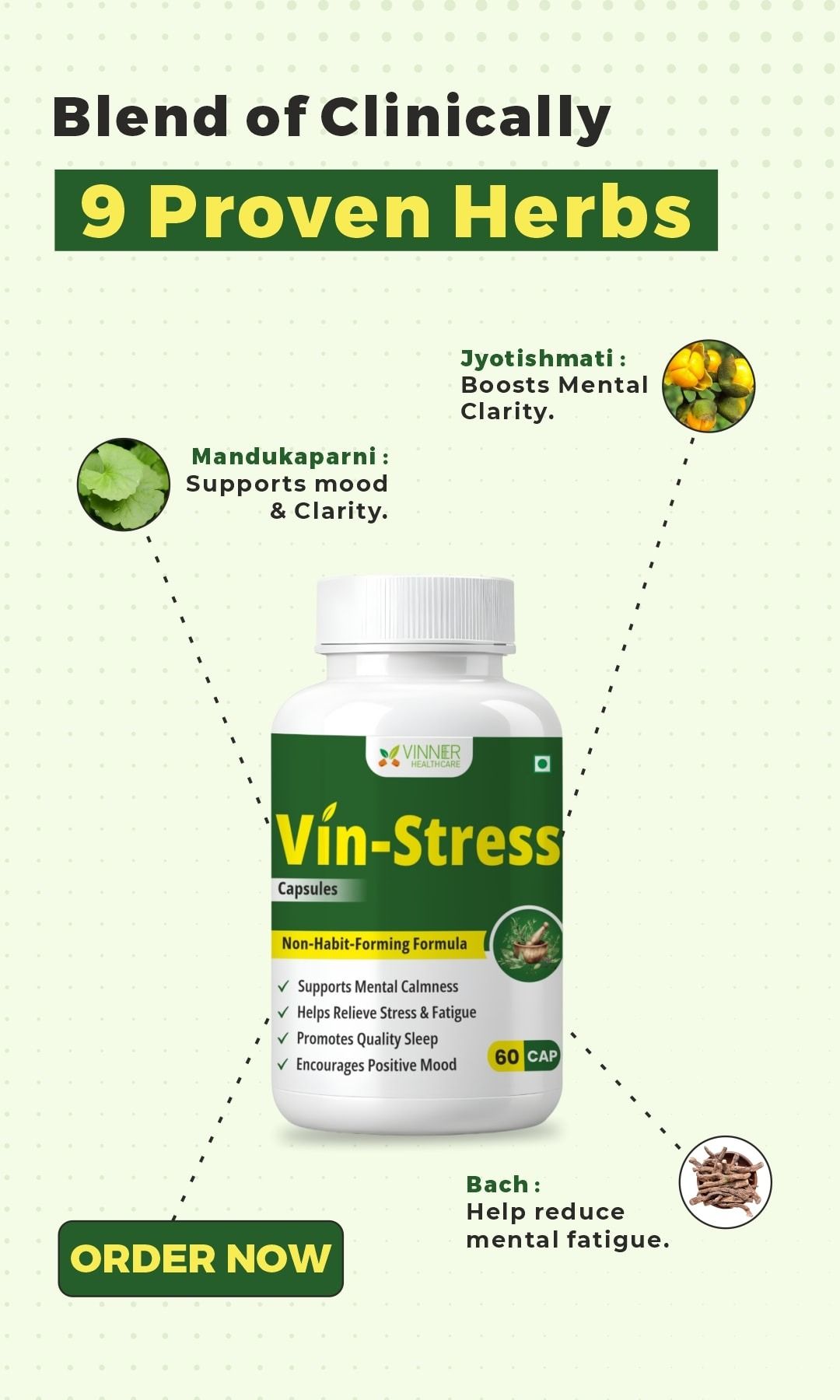 If stress, overthinking, or sleepless nights are affecting your daily routine, Vin-Stress offers a safe, herbal solution backed by traditional wisdom and modern wellness needs.