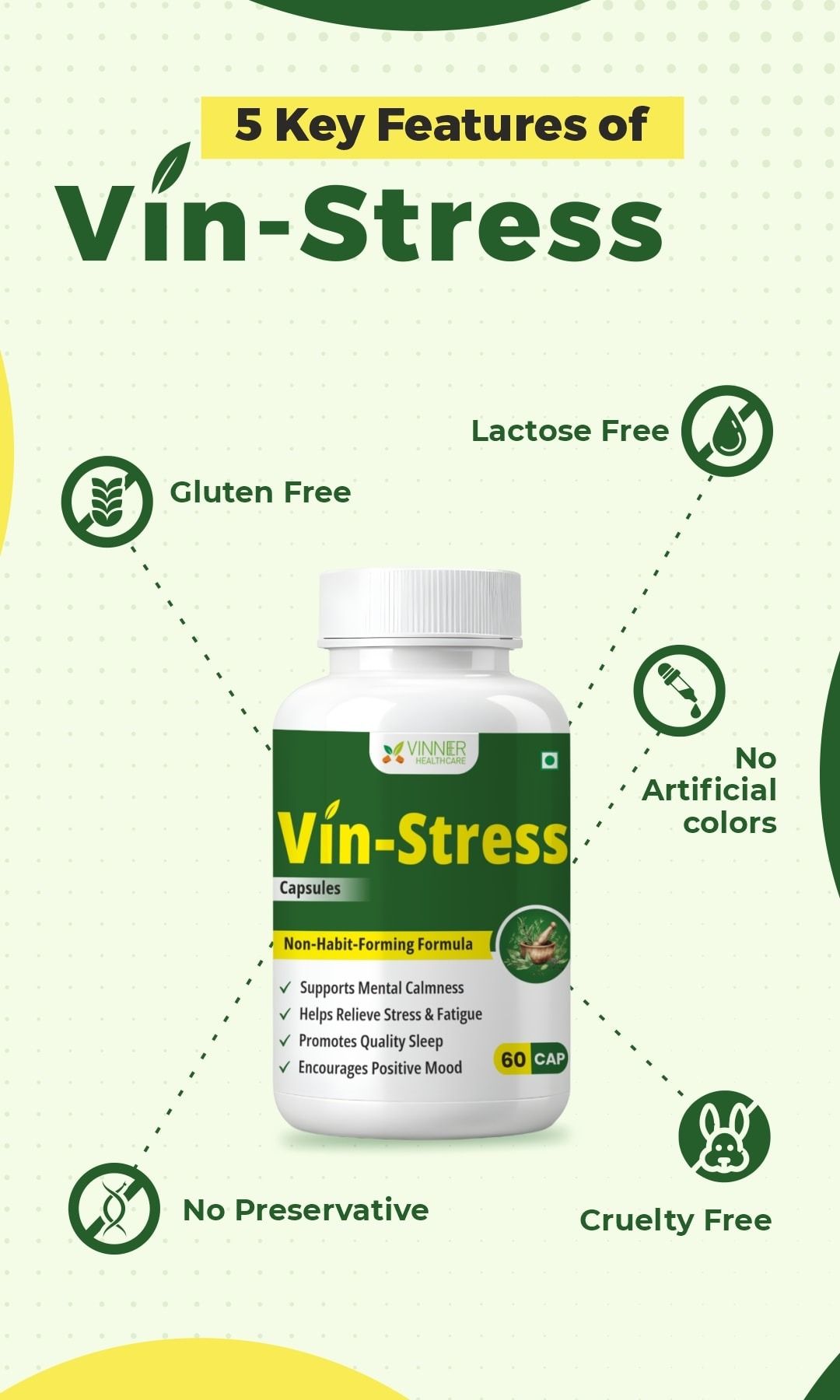 Vin-Stress is manufactured in a GMP-certified facility with ISO standards, ensuring purity, potency, and safety. Each batch is lab-tested and free from heavy metals or harmful chemicals.